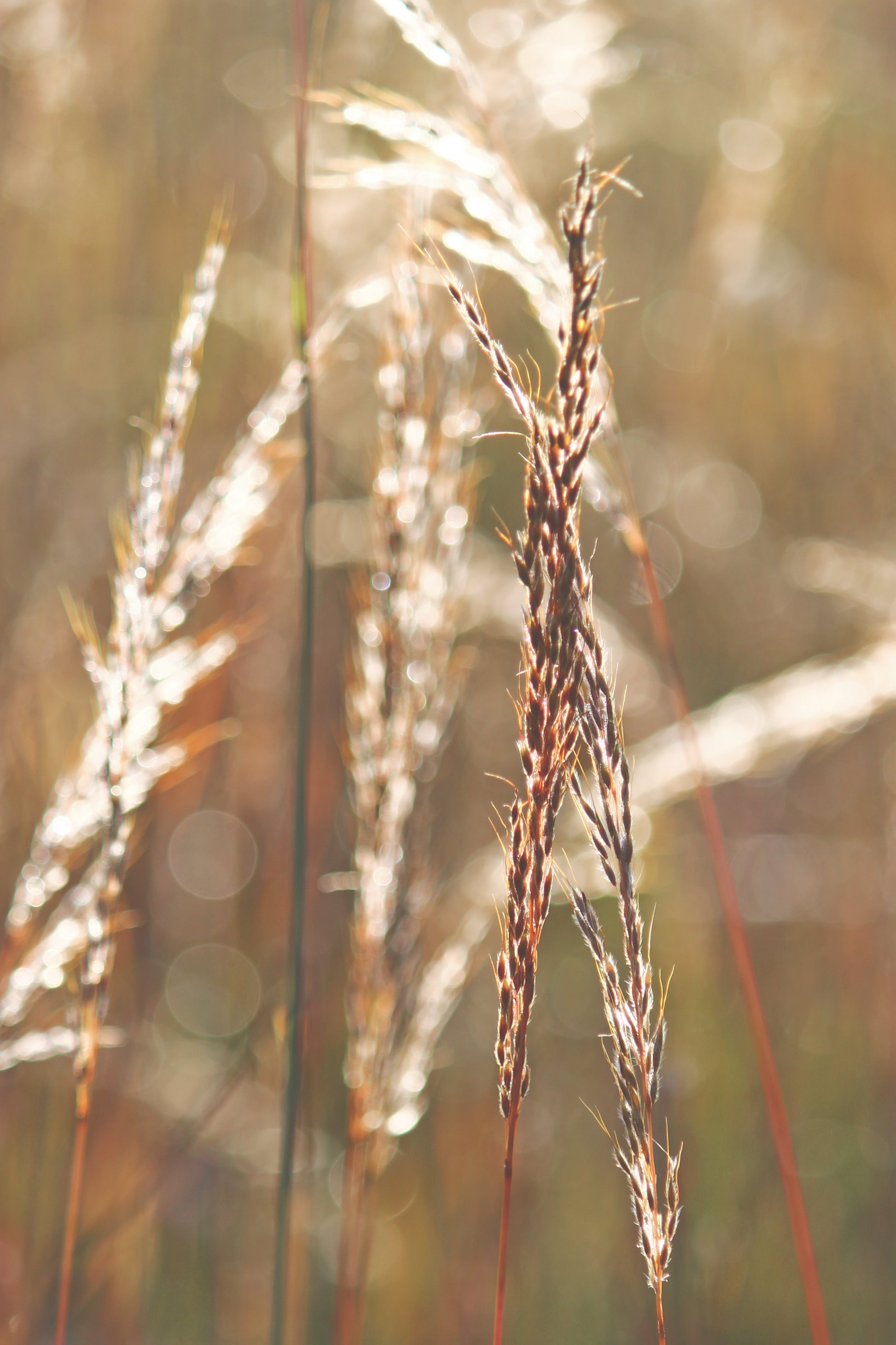 Close up view of yellow Indian sweetgrass backlit by the sun.