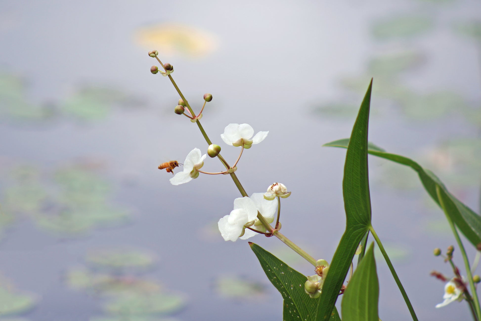 Aquatic plant Arrowhead, blooming in Northern Wisconsin.