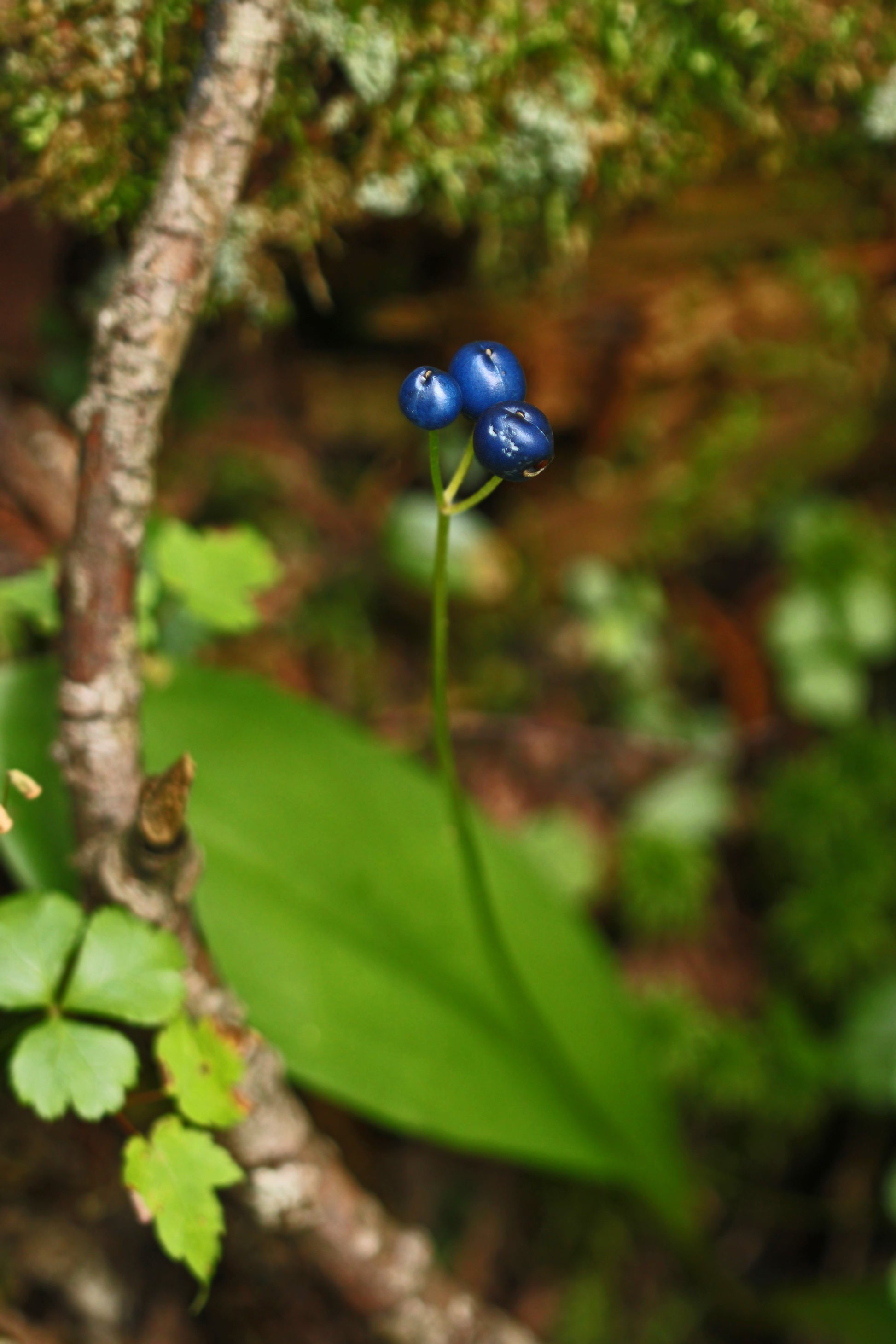 Blue bead lily wildflower seed pods in Northern Wisconsin cedar swamp