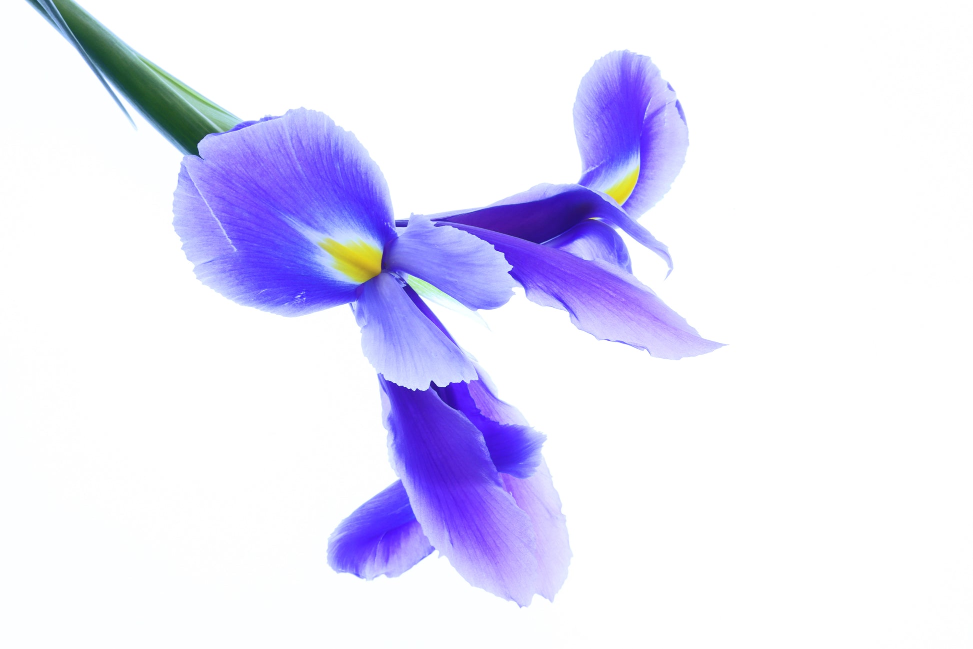 Single iris flower close up on white background