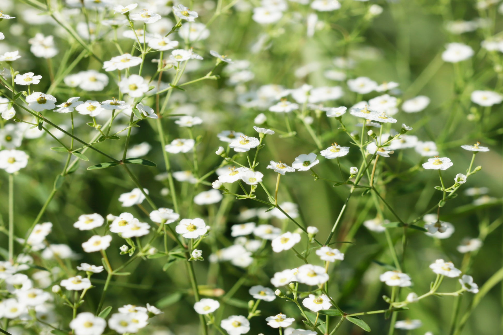 Close up full frame view of a large group of flowering spurge. Selective focus