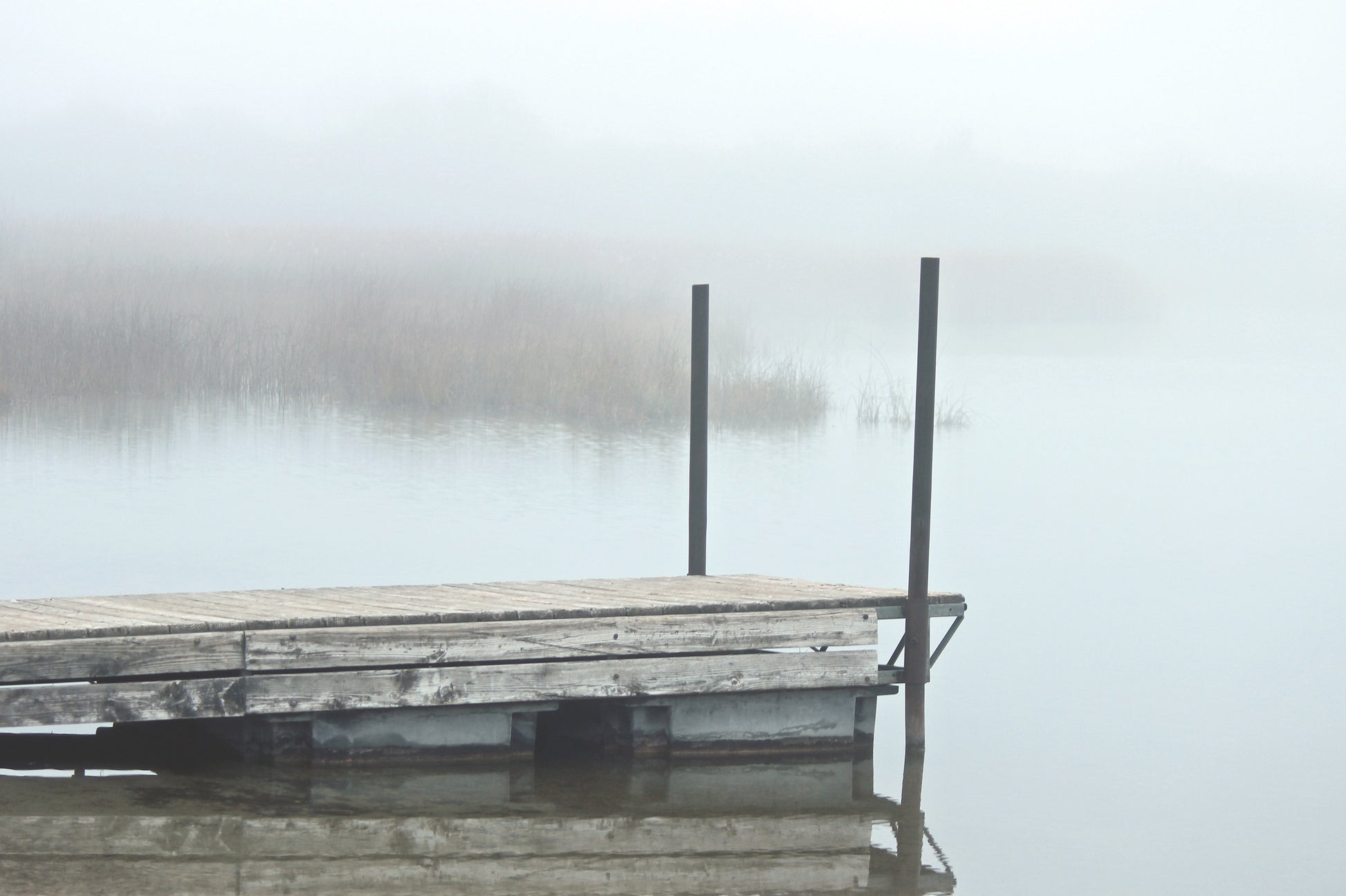 Pier over misty Ottawa lake