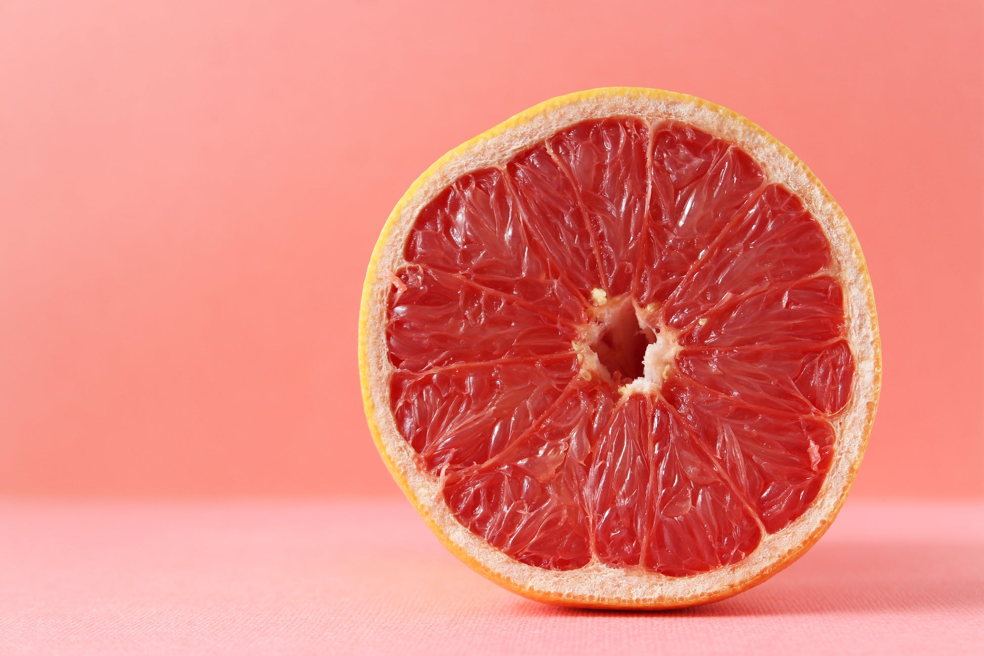 Grapefruit cross section styled on two tone pink background