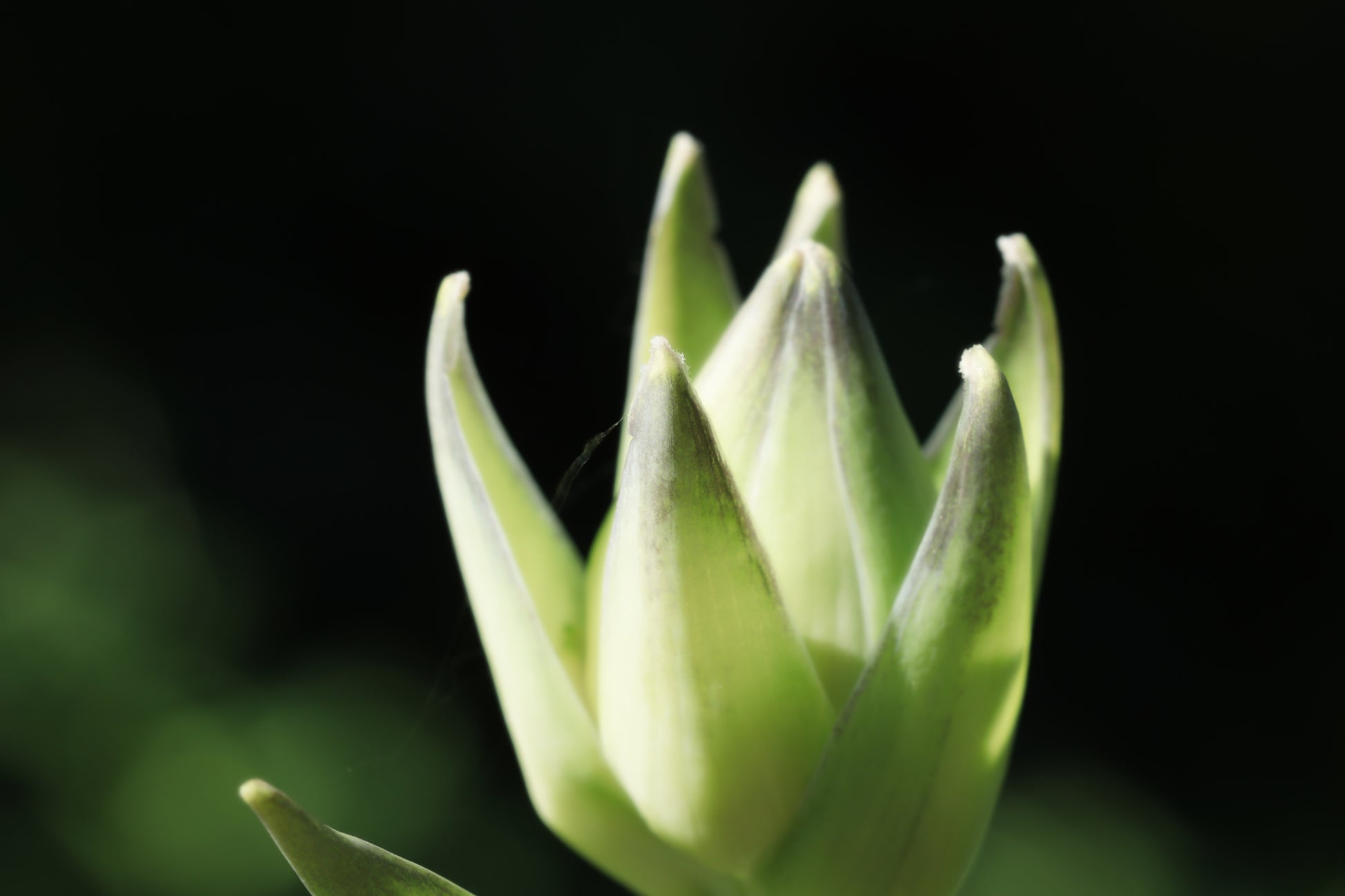 Macro view of hosta plants bud in the sunlight.