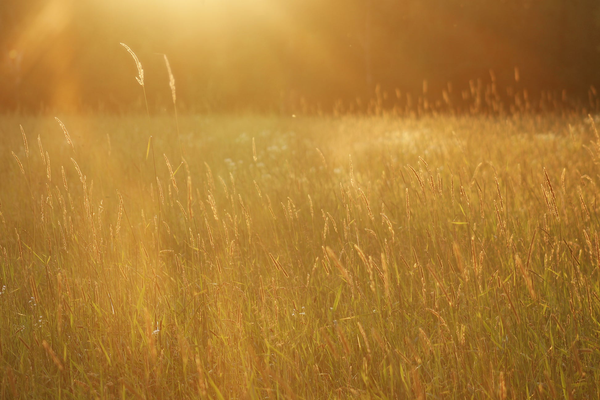 Sunset over large grassy field.