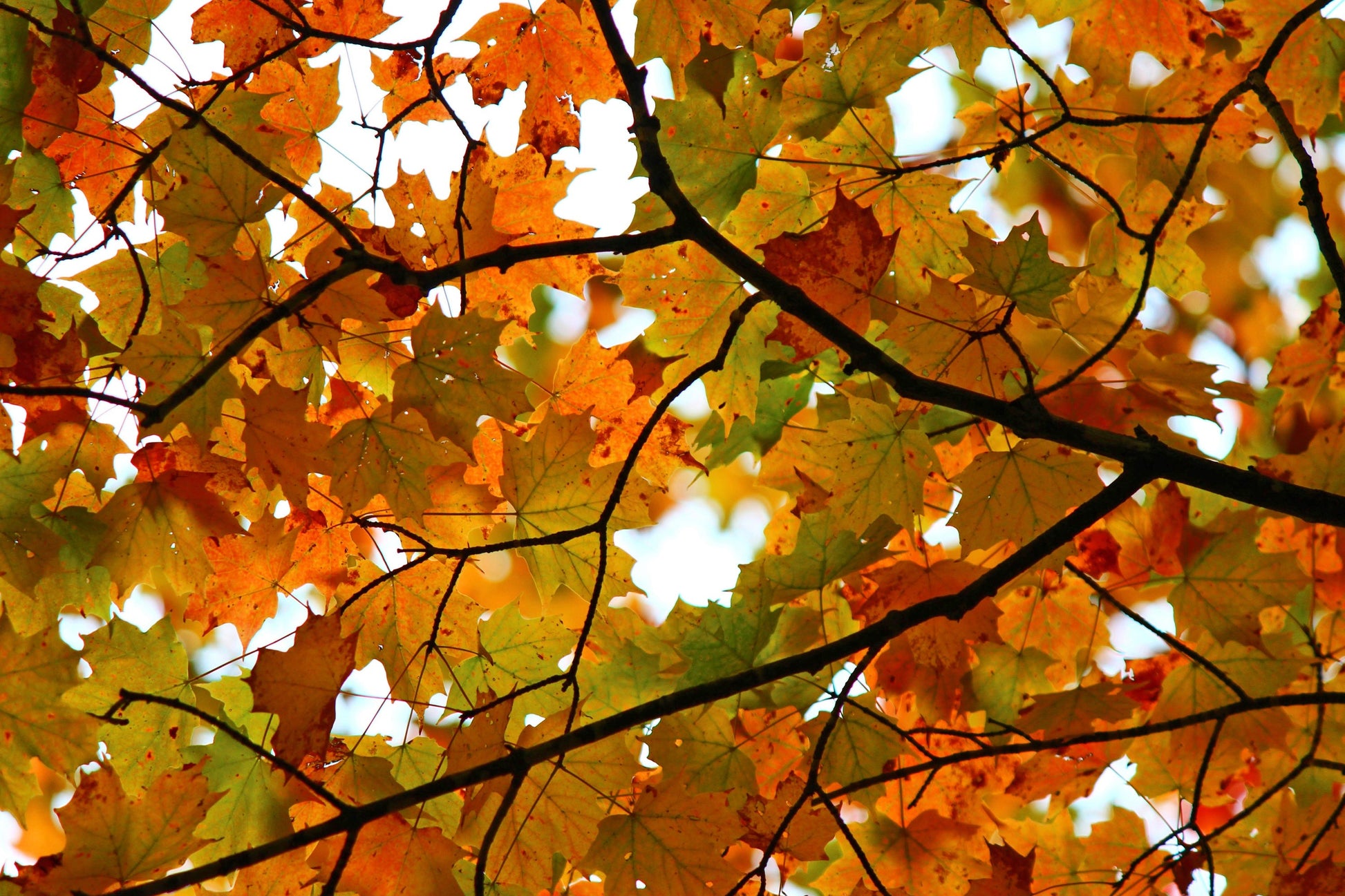 Full frame view under the umbrella of an autumn's view of maple tree.