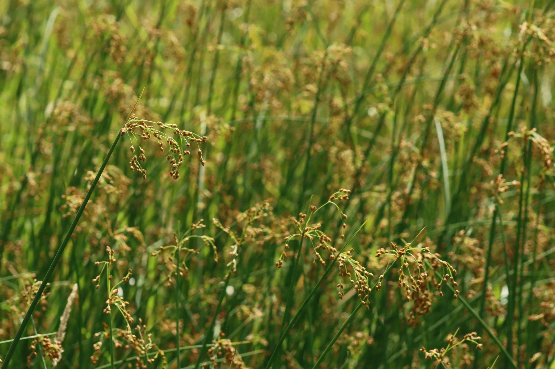 Full frame view of a field of softstem bulrush