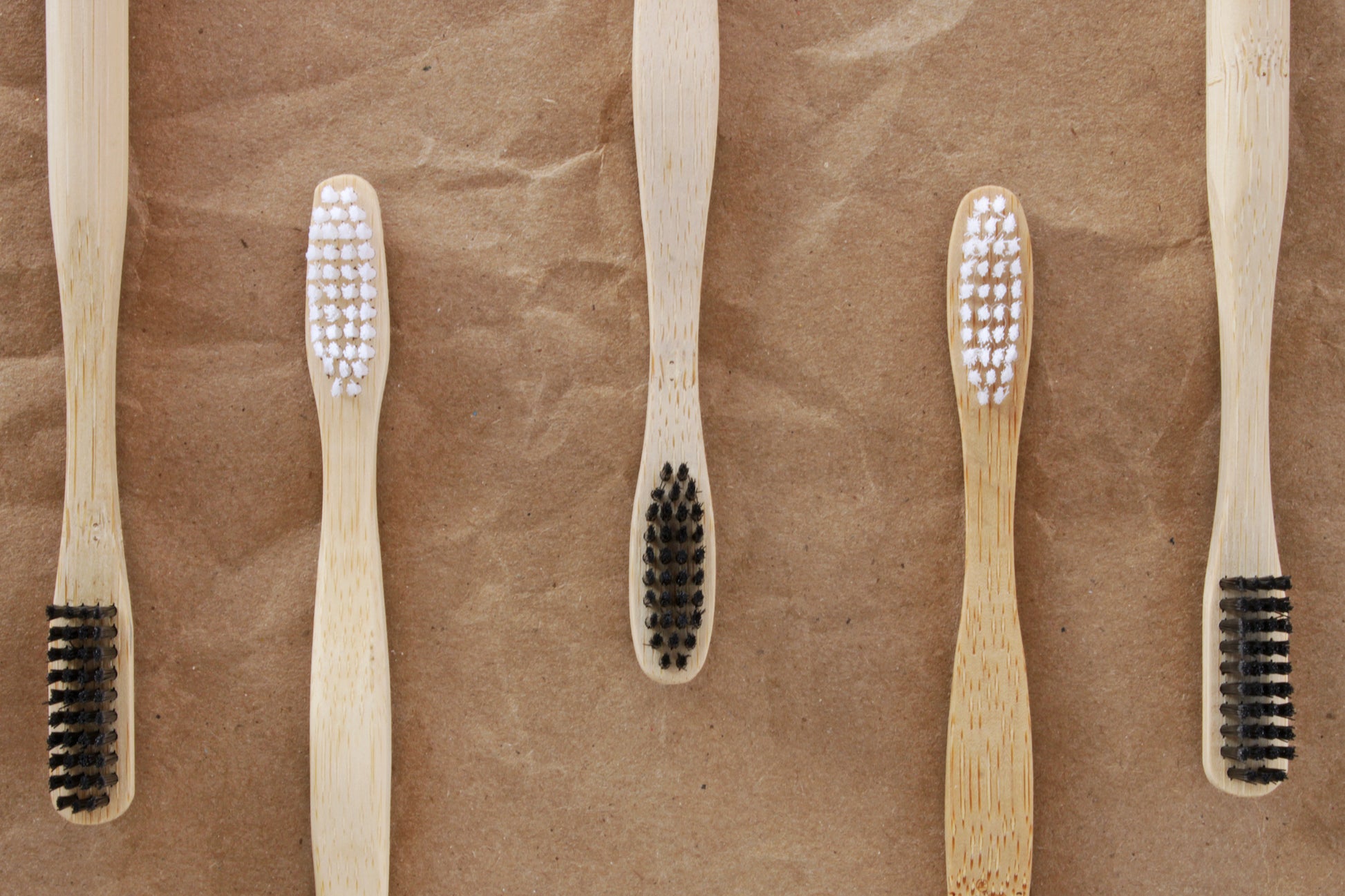 Still life of bamboo toothbrushes