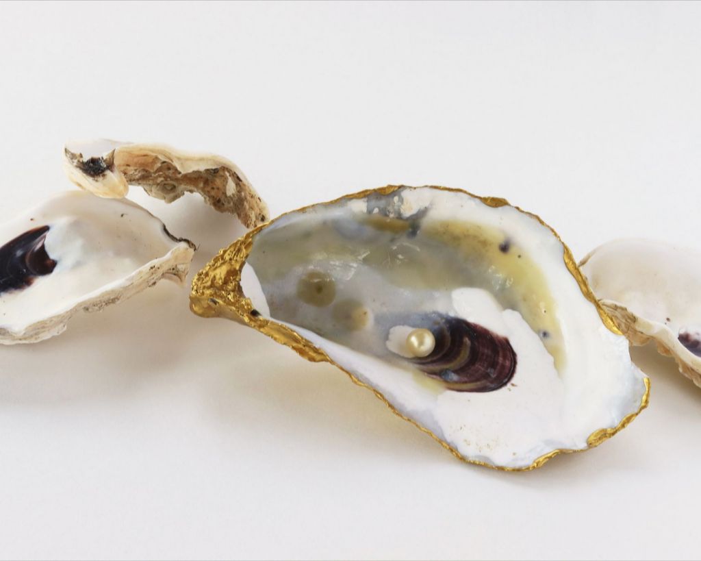 Objects in this photo: Oyster shells hand collected from the coast of Maine, USA.