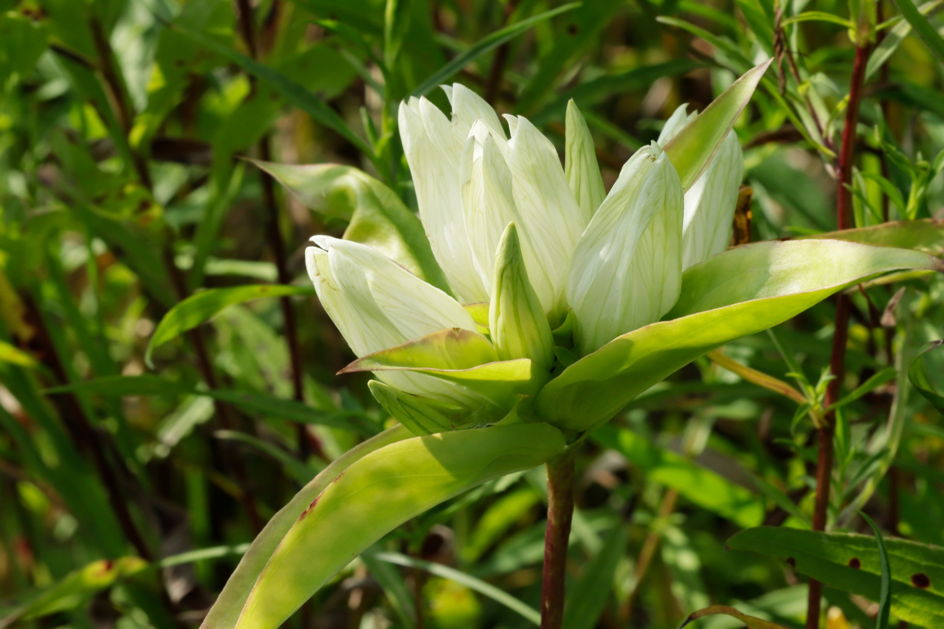 Cream plain gentian in bloom.