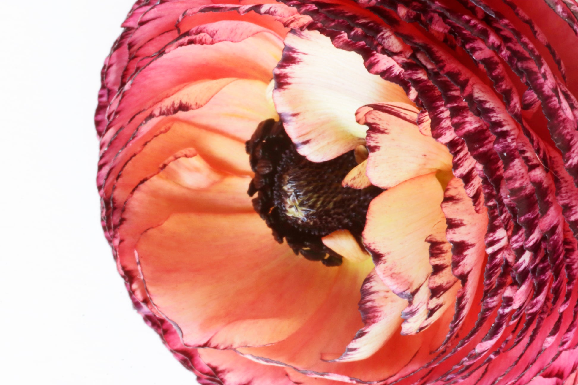This fine art photograph features a single pink ranunculus delicately set against a clean white background, capturing the quiet beauty of simplicity. The soft, layered petals unfold in graceful spirals, showcasing the flower’s natural elegance and intricate structure. Bathed in gentle, natural light, the ranunculus appears almost ethereal—its vivid hue standing out in striking contrast to the minimal backdrop. This still life image evokes a sense of calm and purity, inviting the viewer to pause and appreciate the fleeting, delicate moments found in nature.