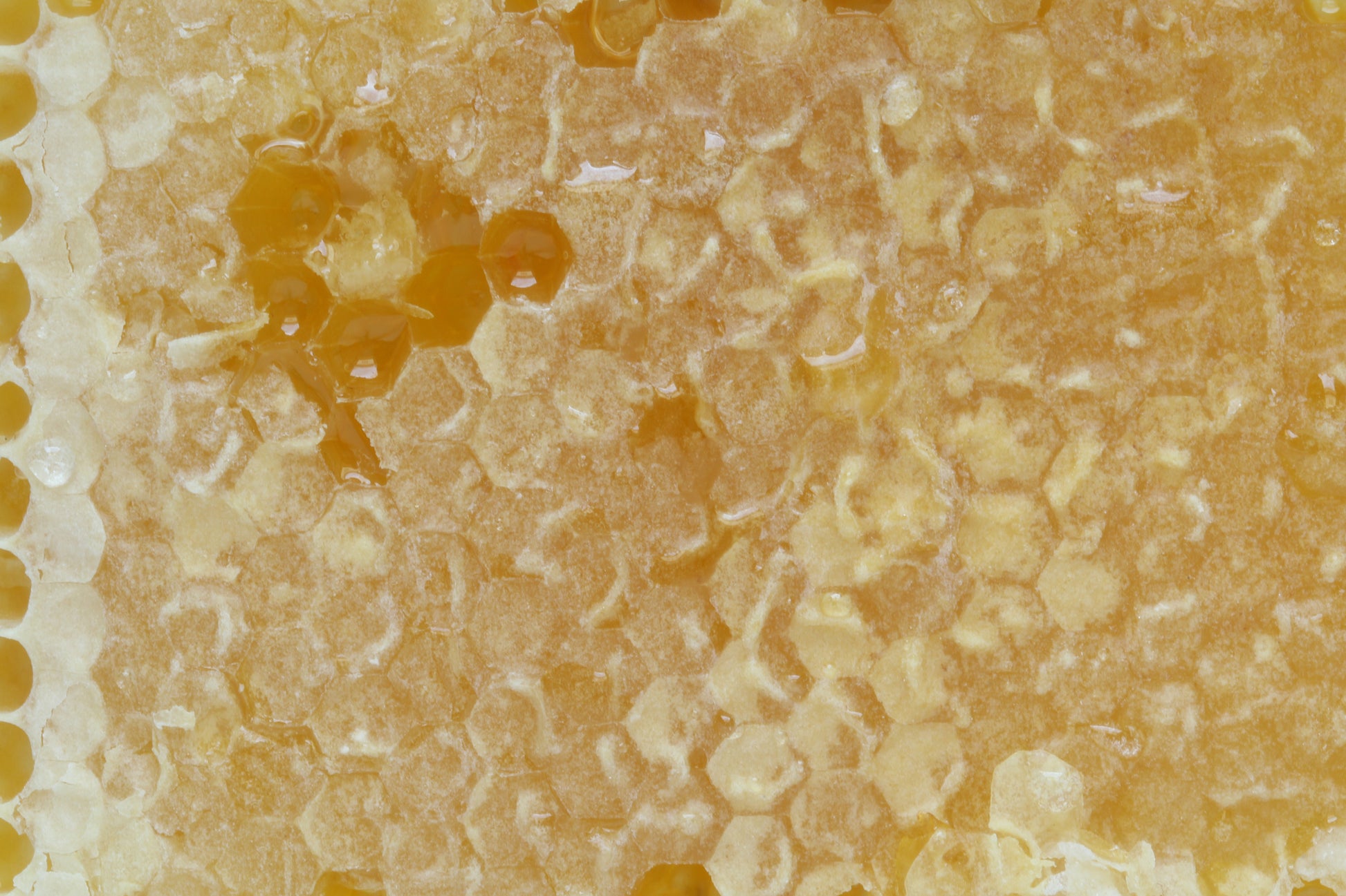 Close up full frame view of a honeycomb.