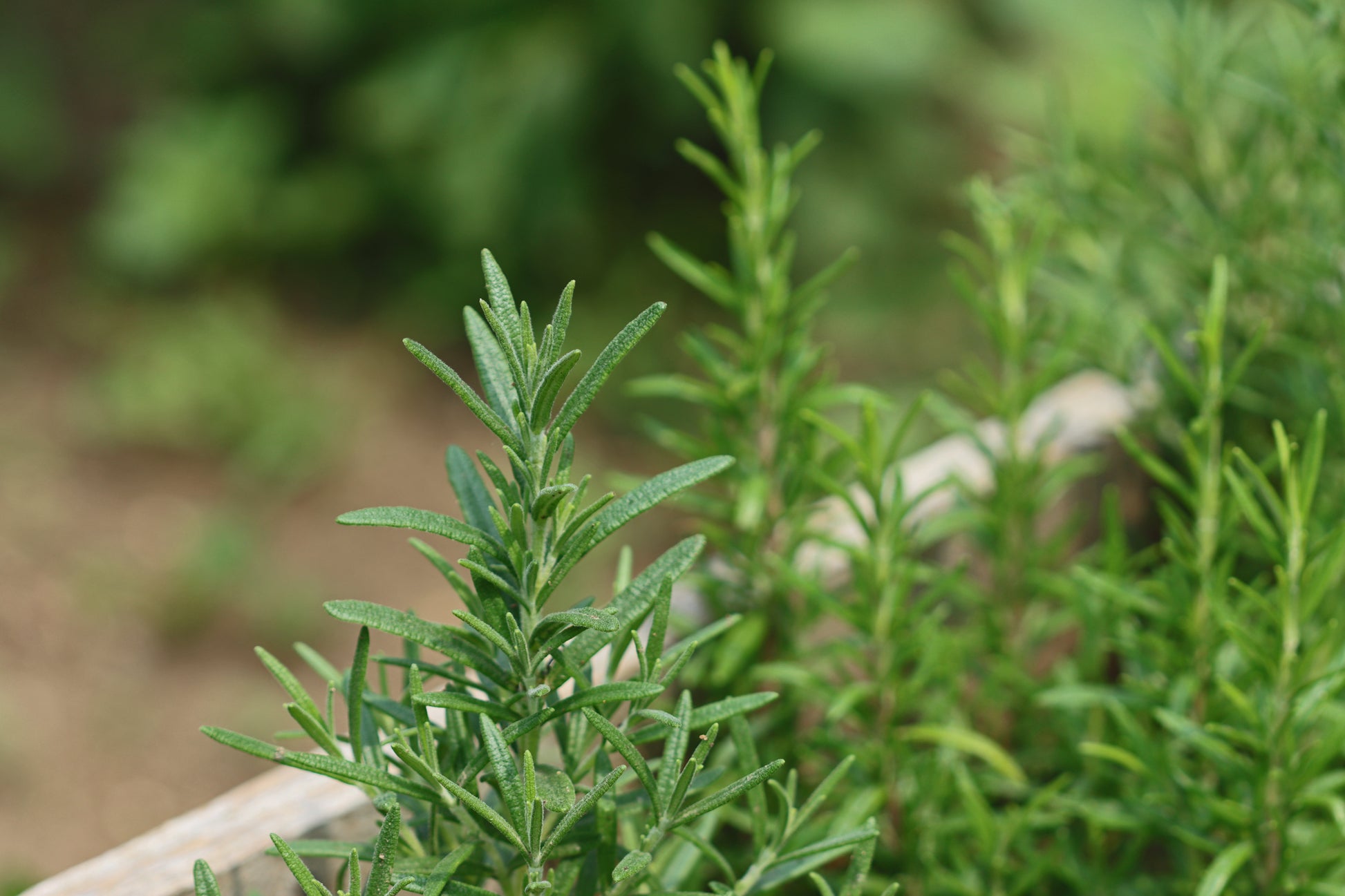 Rosemary plants inside raised garden bed.
