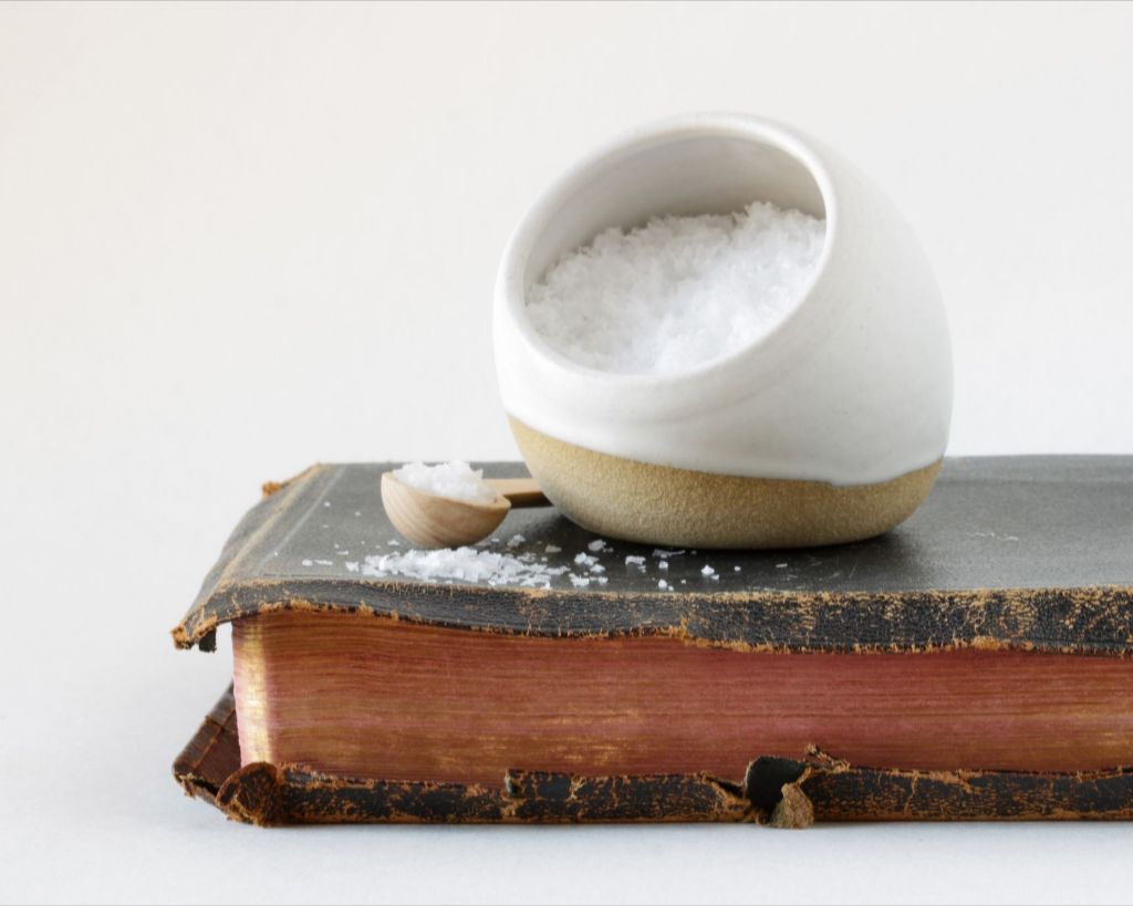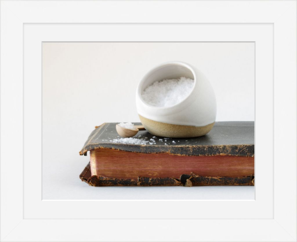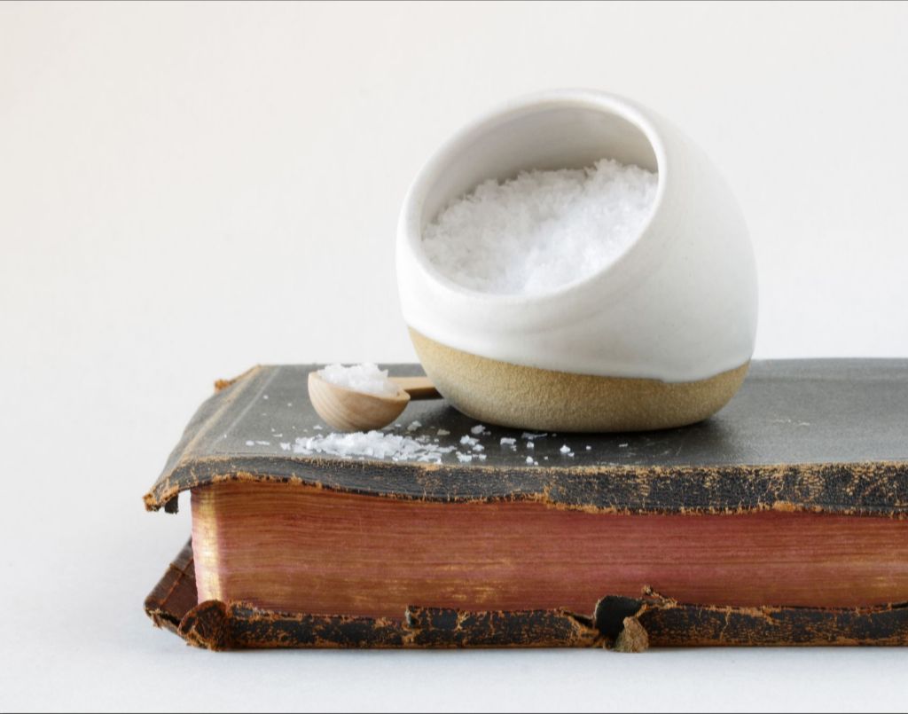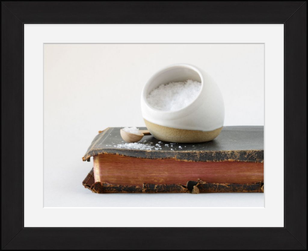 Objects in this photo: Heirloom family bible & hand made salt cellar from White Chapel Pottery