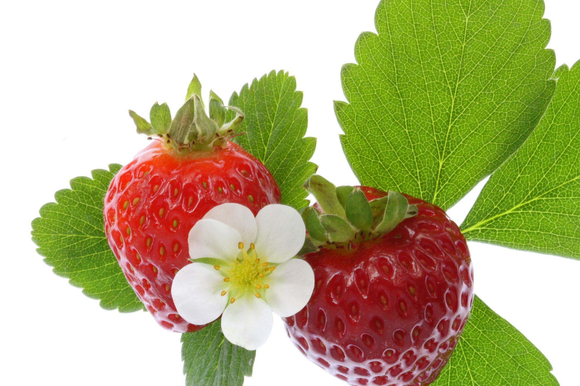 Strawberry plant in the growth stage styled in white background still life.