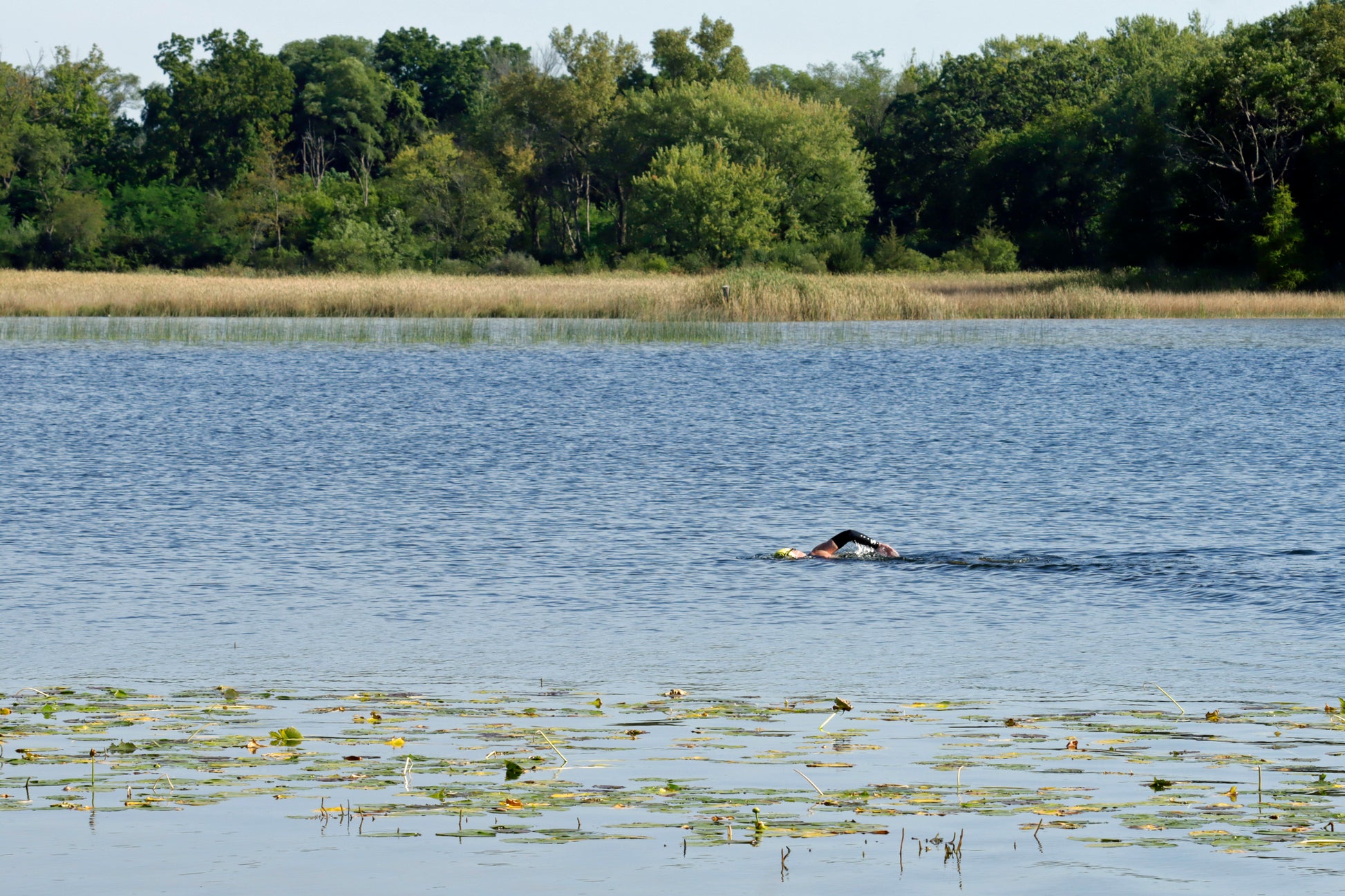 Professional triathlete swimming at Ottawa Lake, Wisconsin.