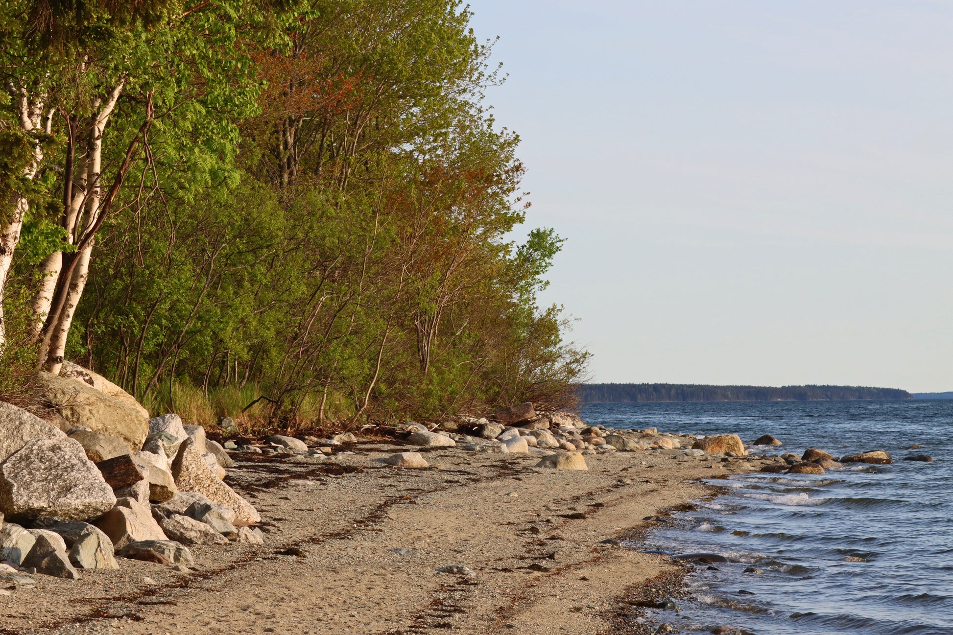 Morning shore along the ocean in Trenton, Maine.