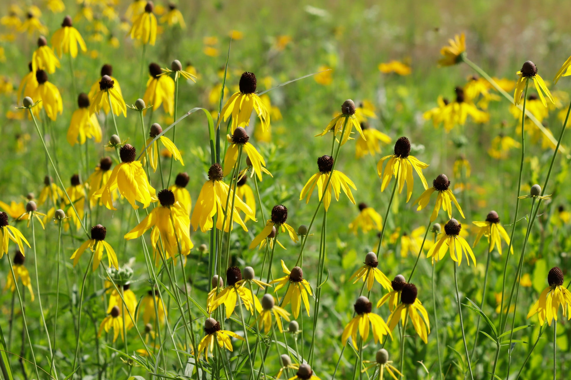 Large group of yellow coneflowers in the meadow. Lapham Peak.