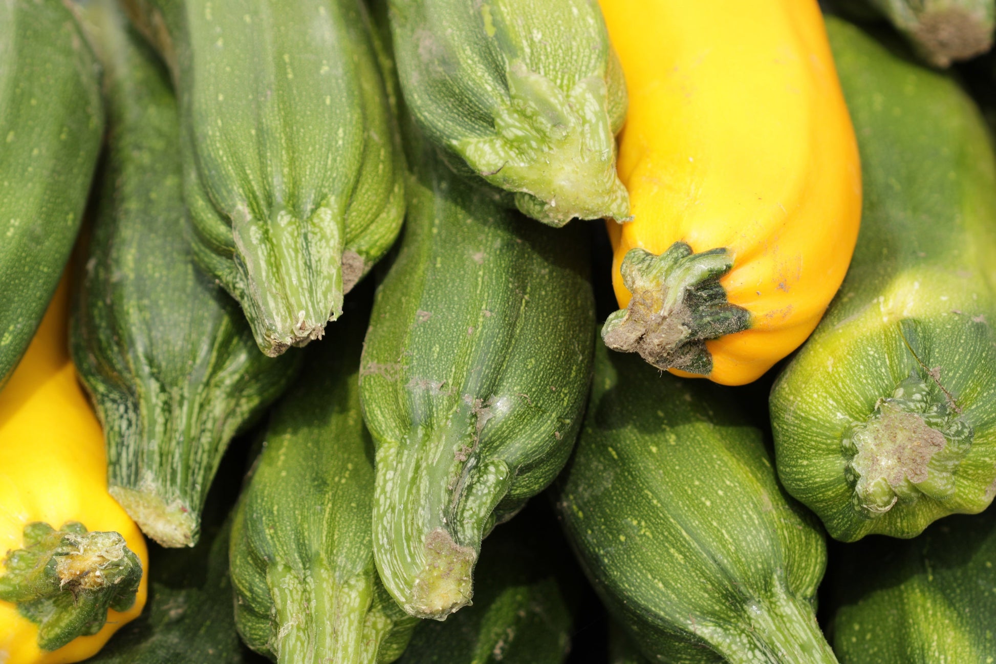Close up full frame view of yellow and green fresh, ripe, raw zucchini.